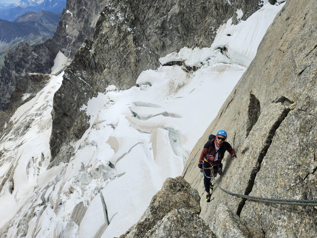 Isti dan sta se tudi Luka in Krištof odpravila najvišjim vrhovom gorovje, ki se je dvigoval nad nami. Plezala sta smer Arete du Diable v sklai Mont Blanc du Tacul. Po preplezani smeri sta se odločila še za vrh Mont Blanca in se v enem dnevu spustila daleč navzdol v Chamonix, ki se je že svetil v večernih svetilkah.