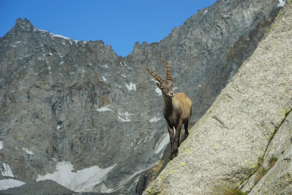 V torek se nama ni mudilo, zato sva vstala zadnja in se počasi preselila v stopnjo etažo na zajtrk. Ko se je že sonce dotaknilo koče je na obisk prišel mladosten kozorog, ki je stal na granitni plati in se nastavljal fotoaparatu. Pridružil se mu je tudi starejši kozorog, ki se je še nekaj časa pasel na travi neposredno ob koči. Po opazovanju te mogočne živali od blizu, sva se navezala in pričela s plezanjem smeri El Catalan (5c/5b, 140m), ki se začne na podestu nad straniščem. Blizu vrha smeri sva na tleh ragledala rog od kozoroga, zato sva naredila še dodaten raztežaj do njega. Spustila sva se po vrvi nazaj do koče ter lovila zadnji avtobus, ki je peljal iz konca doline Val Ferret do našega kampa. Na avtobusu pa zopet presenečenje! Krištof in Katarina sta v zadnjem trenutku ujela prevoz in se nama zadihana od teka pridružila na vožnji.